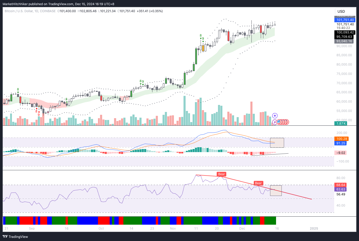 As we enter the very last two weeks of the year, Bitcoin is getting my attention again. I successfully caught the first leg up from 33k up to 100k, and took profit 2 weeks ago on the backdrop of heated sentiment, extremely overbought conditions, fading momentum and an uncomfortable rush of money into shitcoins. I had a strong conviction we would have a big nuke coming. For the “normies” out there, a nuke is a very large move to the downside in a very short timeframe. They are the landmark of every bitcoin bull run. This is where we sacrifice the blood of the late levered bulls, in order to let the price run higher. A small price to pay for HODLER, a death sentence for monkeys. It’s all part of the circle of life in the market.