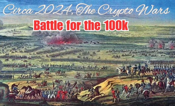The blood of bulls and bears is being spilled all over the battleground of the 100k level. We are approaching Napoleonic wars epicness!