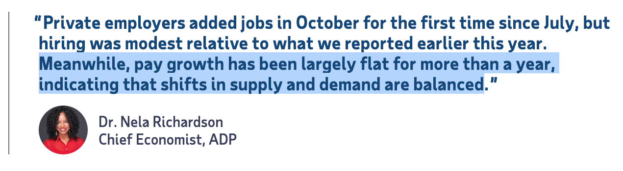 A job market at equilibrium means wage growth is flat. The ADP release confirms this dynamic again.
