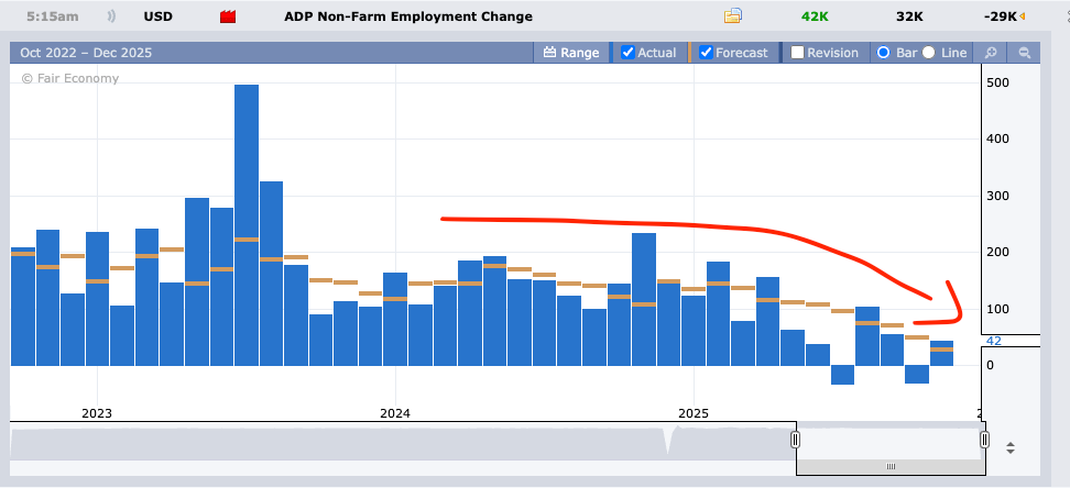 ADP Employment Change added 42k jobs instead of the expected 30k.