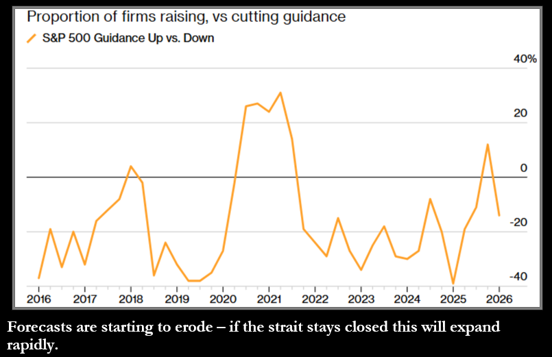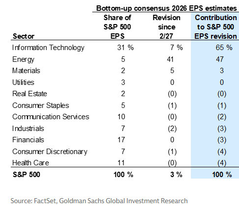 Energy-driven earnings leadership is bad leadership. Historically, when energy carries index earnings, the usual reason is that input costs are squeezing every non-energy sector on the other side of the P&L.
