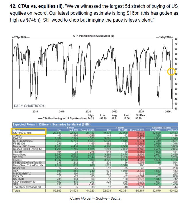 The fast money did the opposite. CTAs flipped from max long to max short in an almost manic fashion, then had to chase it all the way back up once the ceasefire held. The positioning snapshots for systematic funds told the story loud and clear: a full round-trip in a matter of weeks.