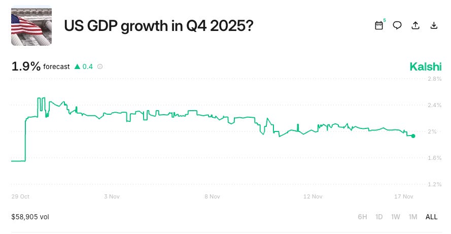 The nowcast will also switch to Q4 as soon as Q3 GDP is out. Kalshi is pricing 1.9% for Q4.