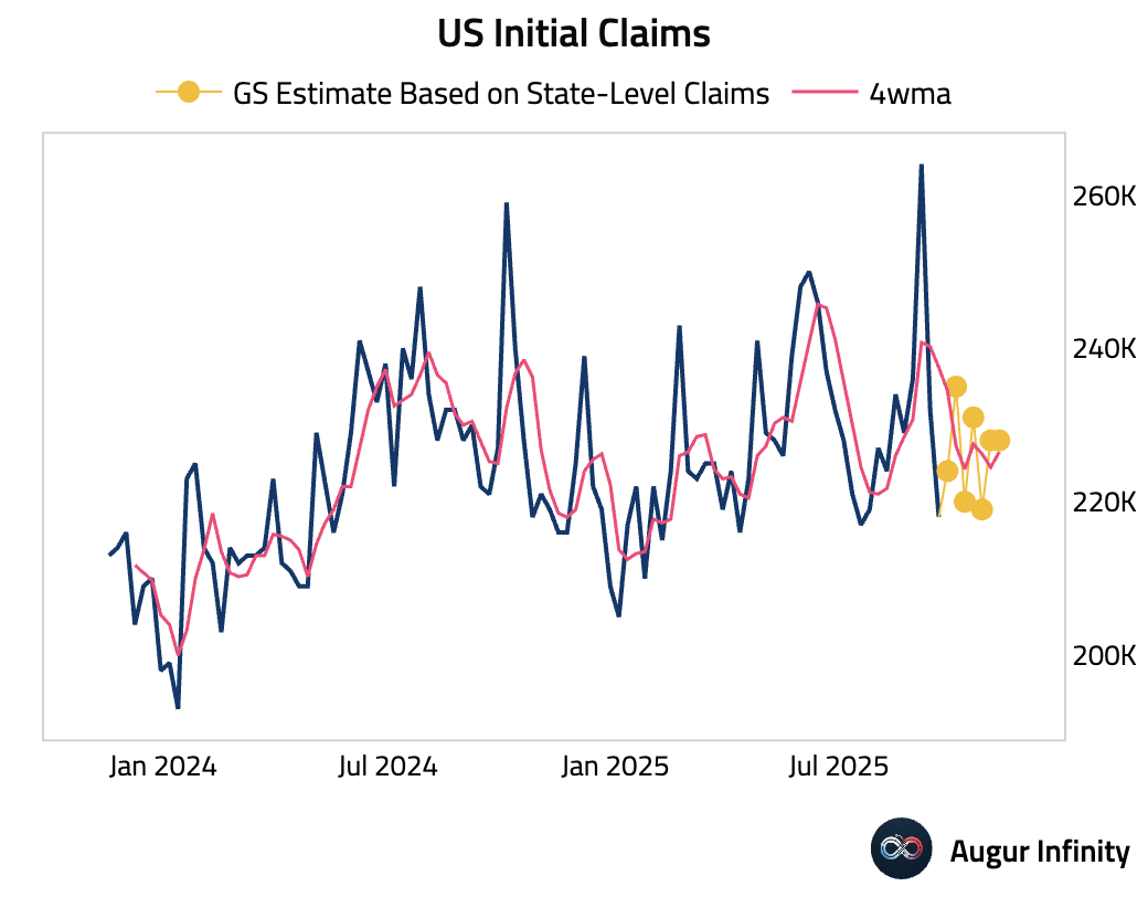 Initial Jobless Claims: Goldman Sachs’ estimate below. They remain rather stable.