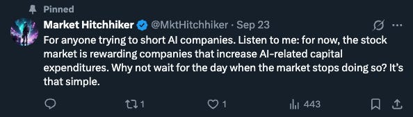 I wrote the below post on X more than a month ago; it was my cheat note for not doing anything stupid like shorting the AI bull market.