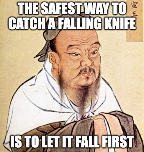 Shay is committing one of the cardinal sins of trading: trying to catch a falling knife. As a famous Chinese philosopher once said (or not):