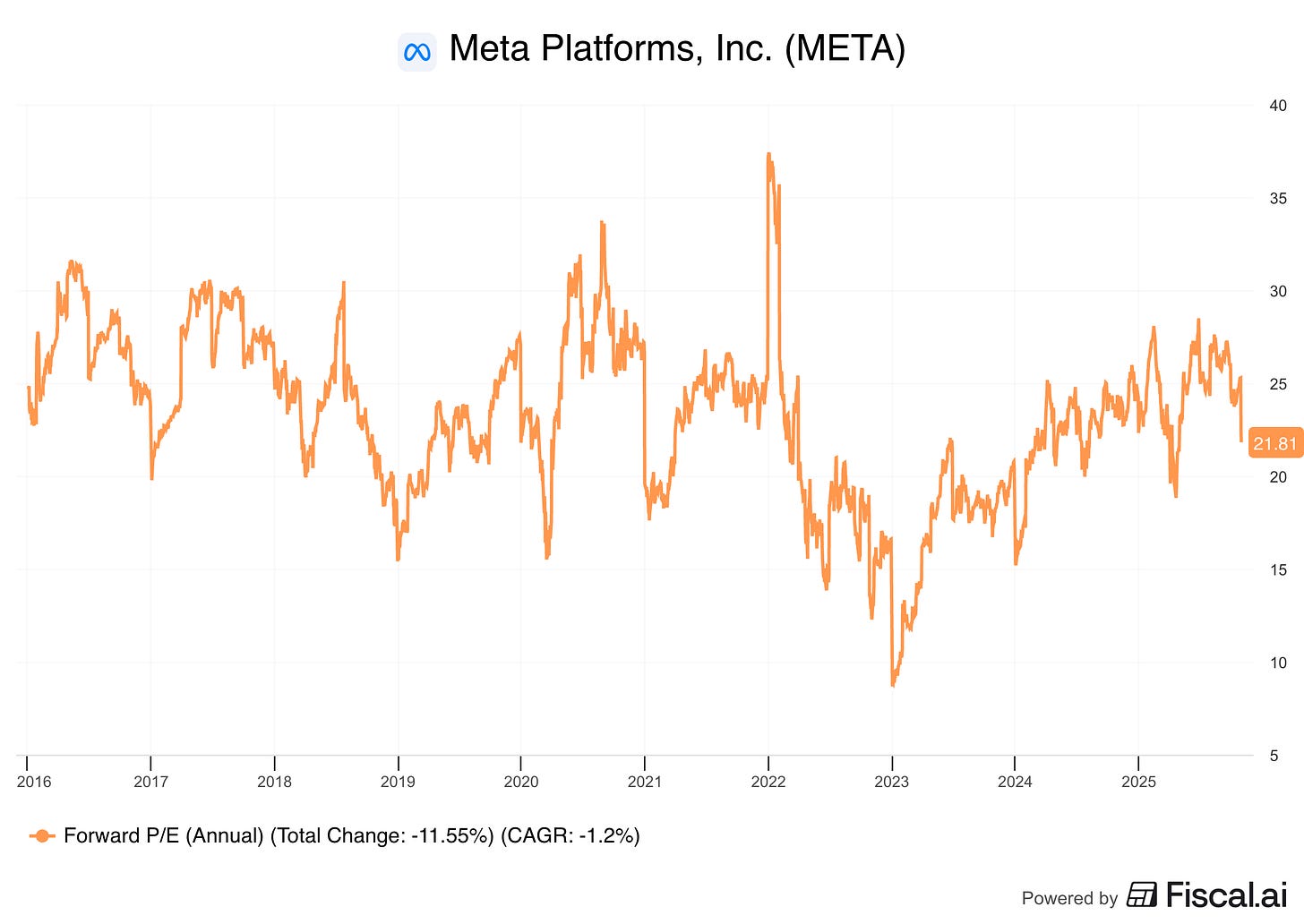 Or the ROIC is not good enough, but Zuckerberg will keep spending until the market tells him to stop. And by telling him to stop, I’m thinking META trading ~30% lower, at least.