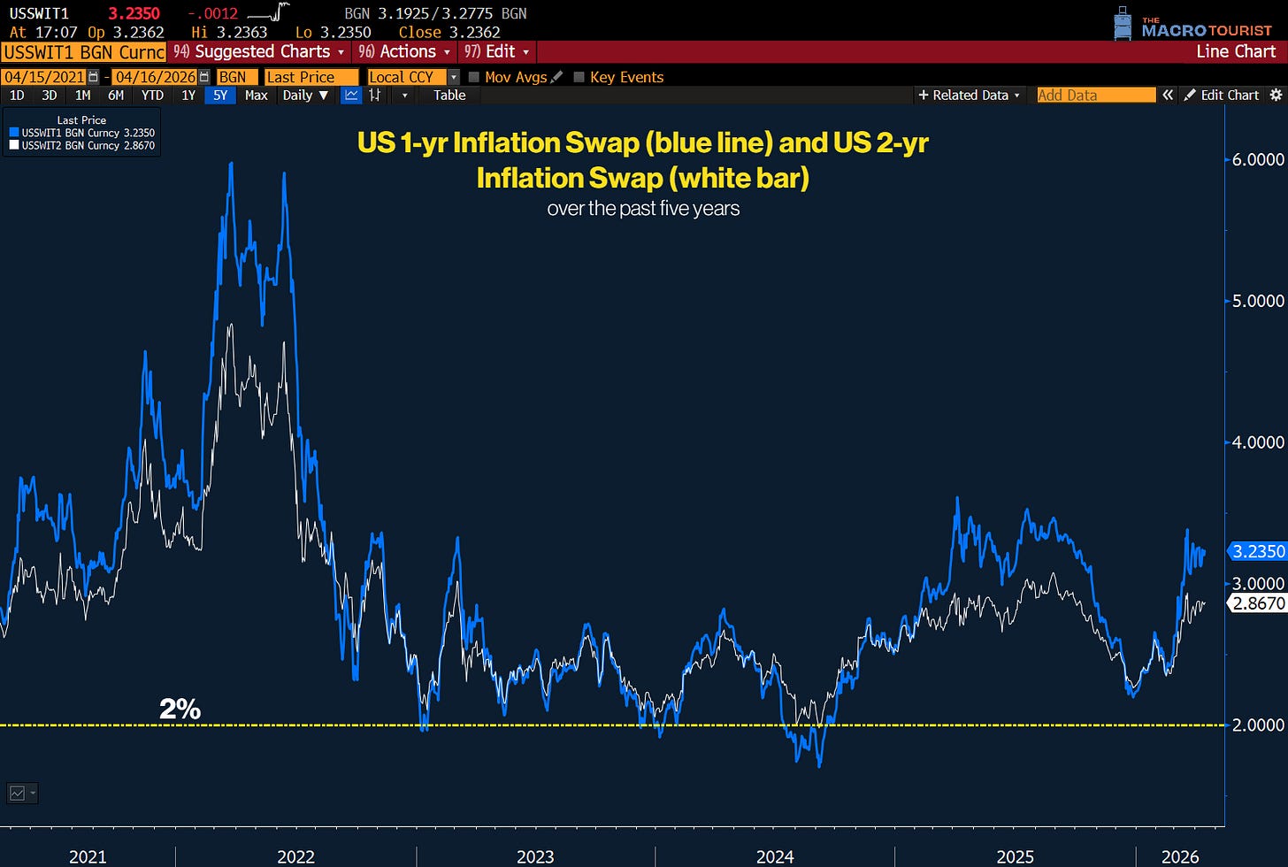 While the point of the post was to debunk a popular post on X regarding collapsing inflation breakevens, the main takeaway from the 1-year and 2-year inflation swaps is that the market has repriced a bit higher the inflation expectations, but we are absolutely nowhere near the horrendous situation of 2021 and 2022.