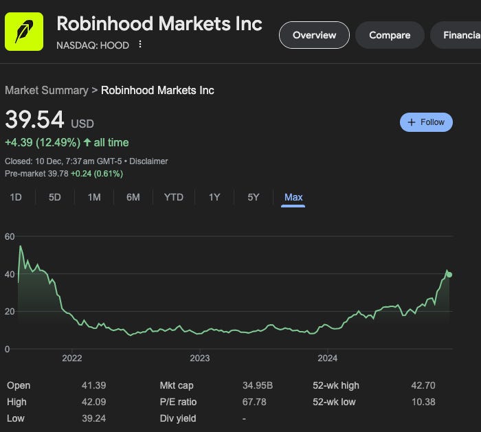 A quick proxy real time assessment of the retail involvment is simply tracking Robinhood stock. Well well… Back to IPO level and the crazyness of Q4 2021.