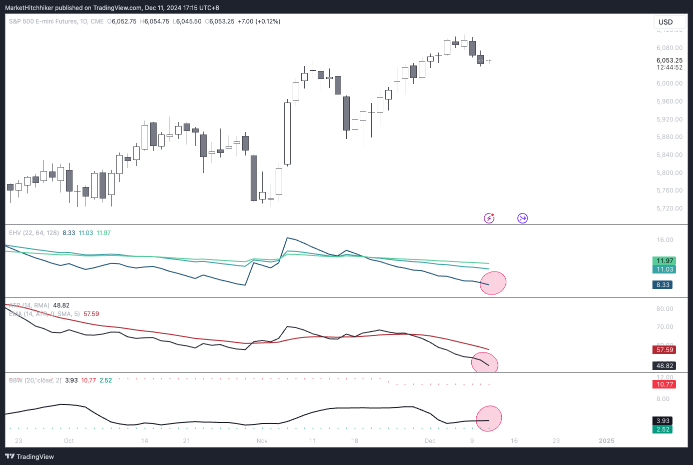 Exponential historical vol, ATR & Bolling Bands Width are in max contraction mode