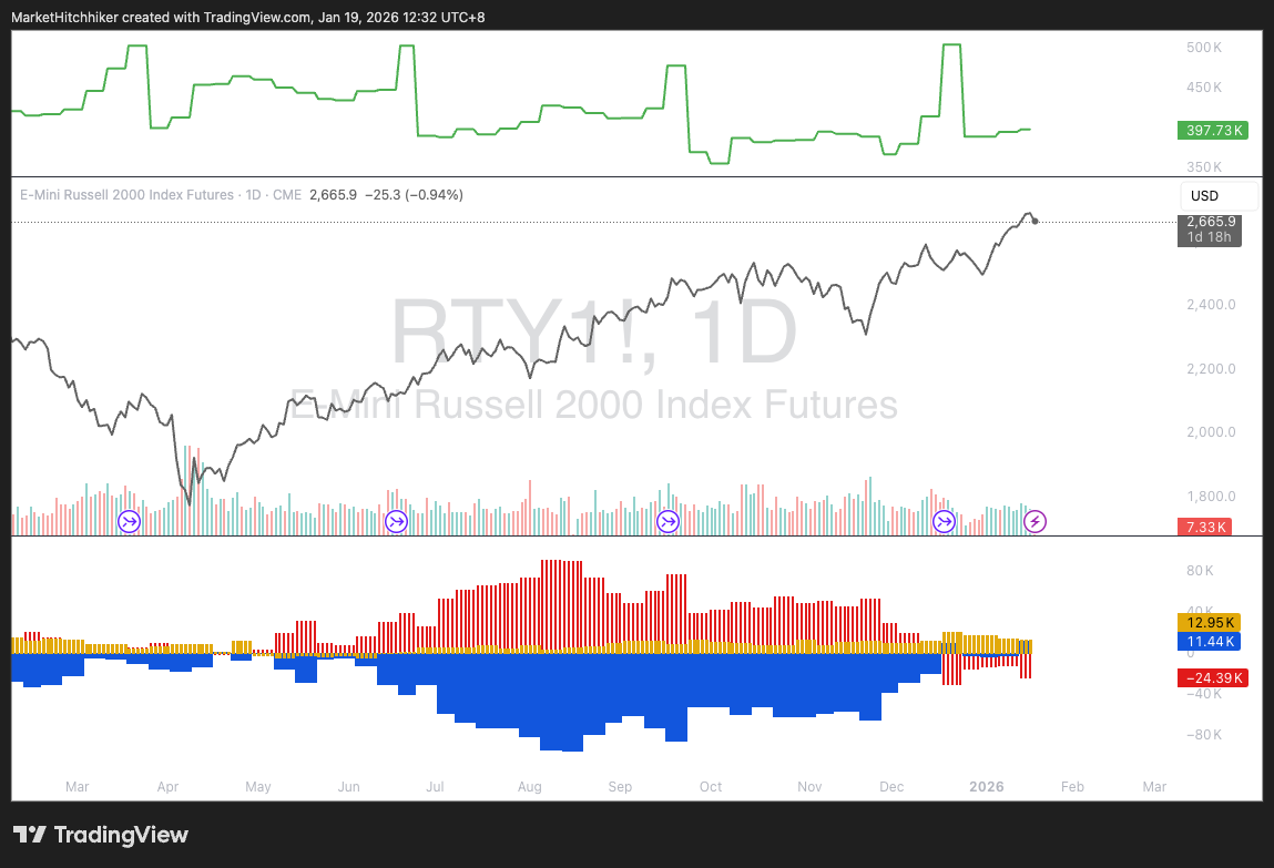Russell 2000: Large speculators are now long. The rotation trade is really unfolding before our eyes. No call for action yet.