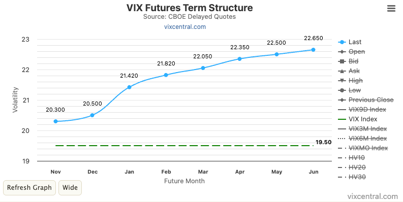 VIX is at 19.50, it is trending up but not spiking => fear is building up but far from extreme