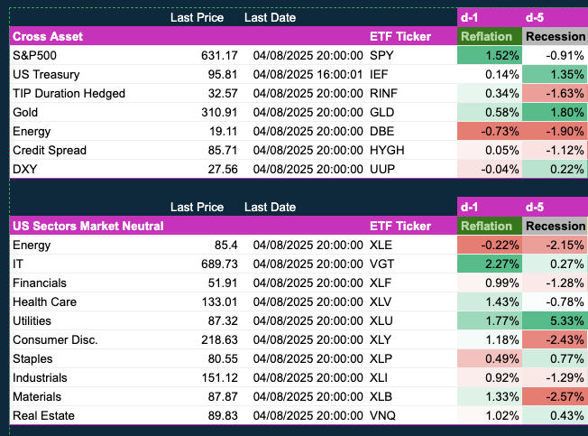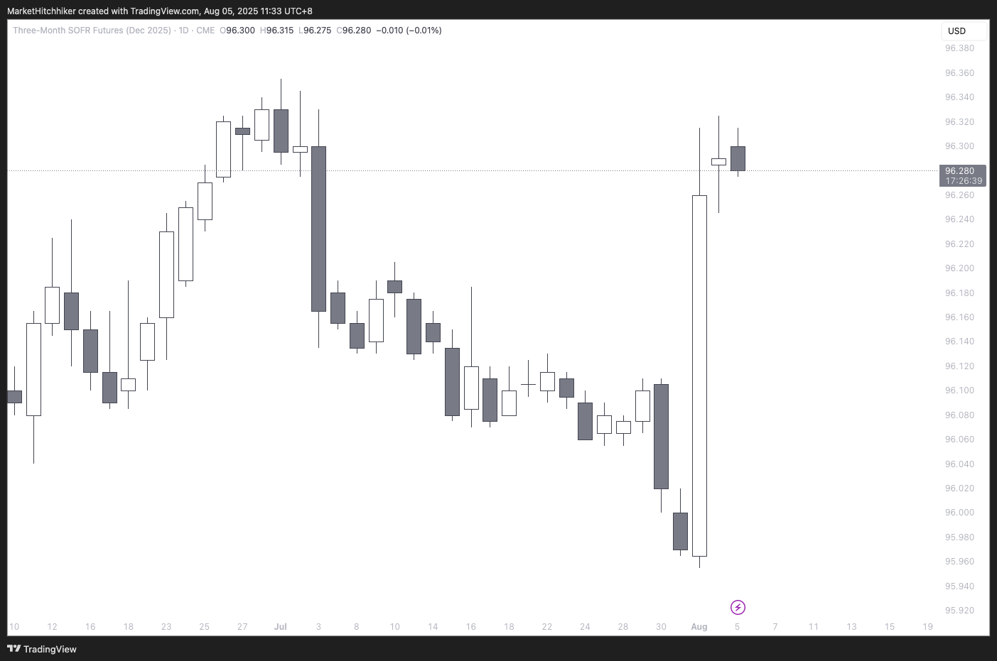 The cross-asset analysis is interesting here: we've seen a break in the usual correlations. The S&P 500 went up while bonds, TIPS, and gold were up as well. This is quite unusual. Moreover, credit spreads barely narrowed yesterday, as measured by the HYGH ETF. Also, the SOFR 3M futures contract expiring Dec 2025 has not retraced Friday’s move—it's holding on and not fading last Friday price action.