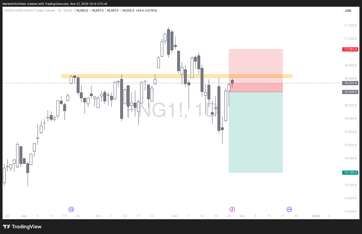 That’s annoying me a lot because we are short the market. Fortunately for us, it is also going through a rotation favouring small caps over big tech. Shorting NYFANG+ future instead of ES was a good call, it still trading near entry.