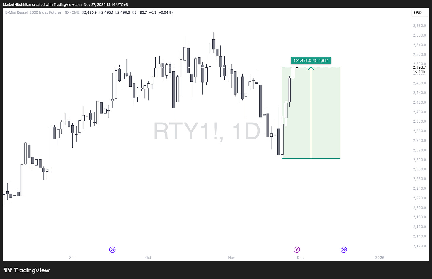 This 4-day rally has been triggered by the repricing of the Fed cut, the most sensitive asset like Russell2000 is naturally over-performing.
