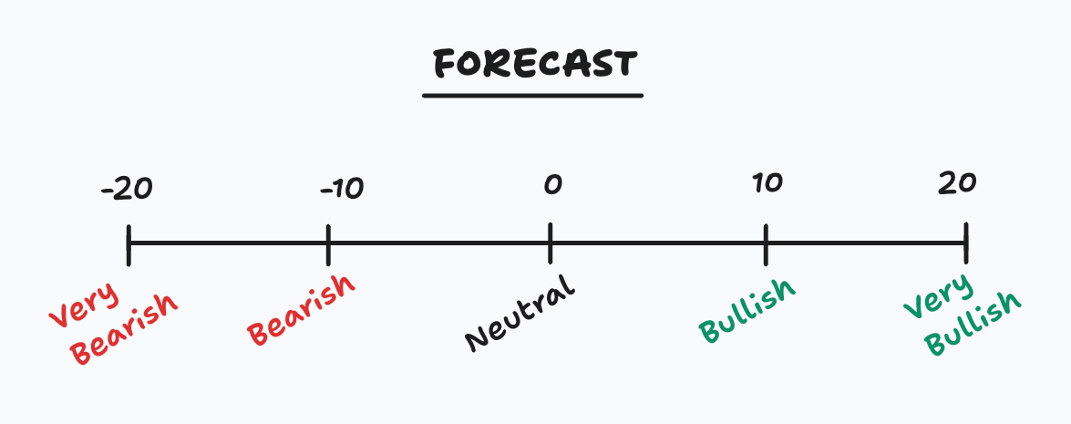 The Golden Rule of Forecasting: Over time, your average absolute forecast must be 10. This means most trades are a standard +/-10.