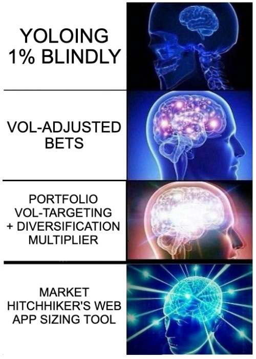 Note: If you are running a strategy with negative skew, such as harvesting equity volatility premium by selling options, you should divide the recommended volatility target by 2. Any volatility measured in a short convexity strategy is always underestimated. Don’t be stupid (looking at you, theta gang).