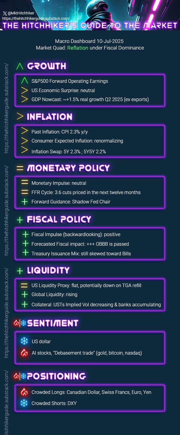 A melt-up in US tech stock is underway, with the Nasdaq at a new all-time high. [Week #19]Trump: from TACO to FAFO? -- FX: short USD is crowdedMarket HitchhikerJul 10, 2025∙ Paid2ShareMacro dashboard updateGrowthS&P 500 Forward Operating Earnings: Another week, another all-time high for the 12-month forward EPS.Continue reading this post for free, courtesy of Market Hitchhiker.Claim my free postOr purchase a paid subscription.