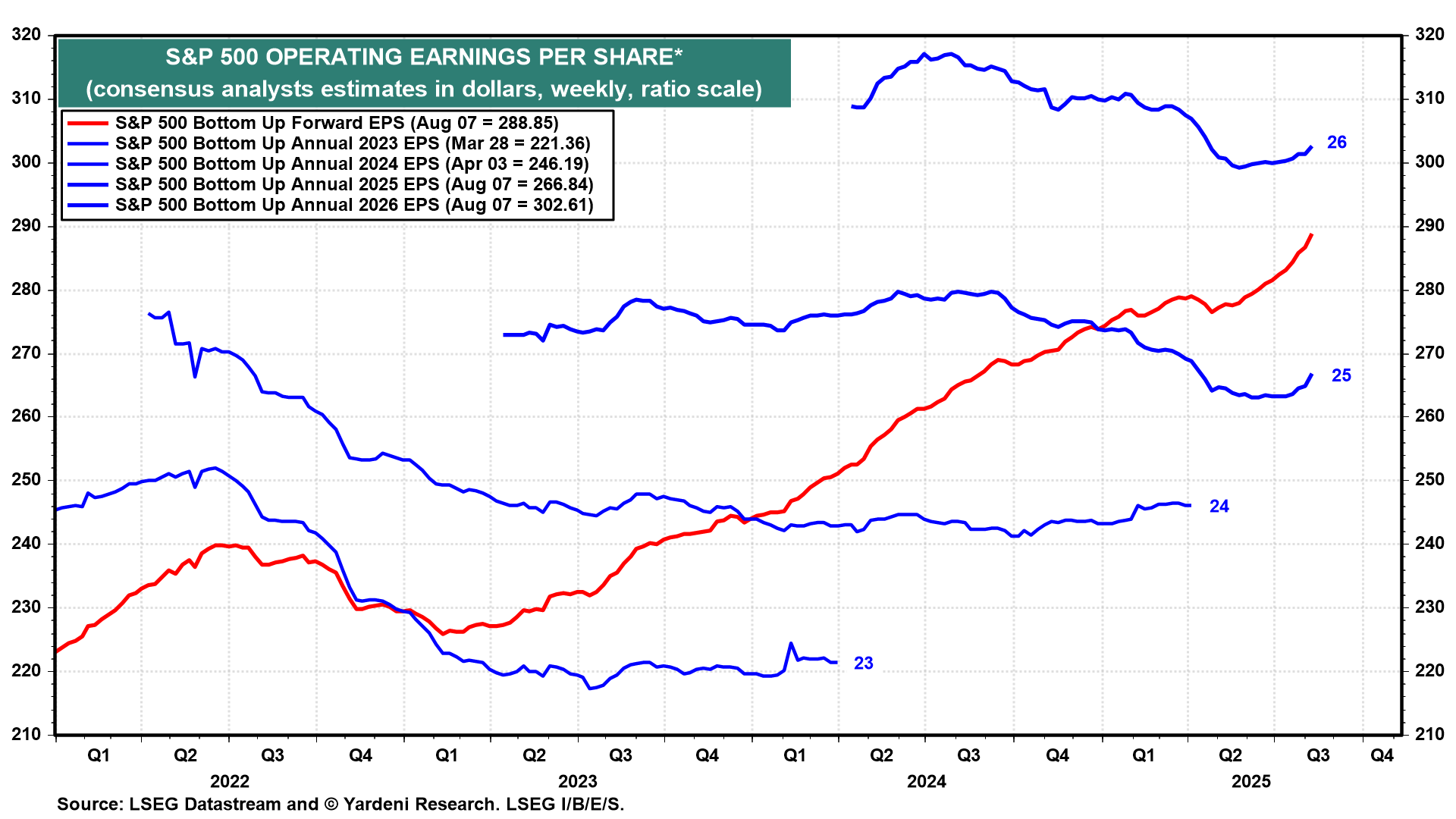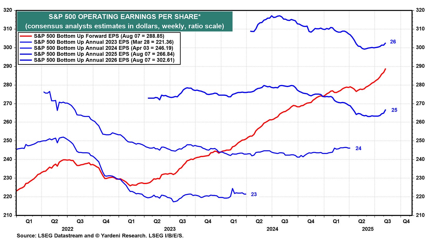 S&P 500 Forward Operating Earnings: Melt up! Even 2026 forward earnings are now going up.