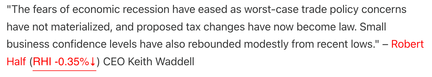 "The U.S. job market remains resilient with the overall unemployment at 4.1%. Labor supply constraints remain. Particularly noteworthy is that the unemployment rate for college-educated professionals is holding steady at just 2.5%, with even lower rates prevailing among specialized accounting, finance and technology roles... our small business clients typically expect experienced staff when they come to us for contractors. And so we don't really have that many right out of college graduates that we place on the contract side."