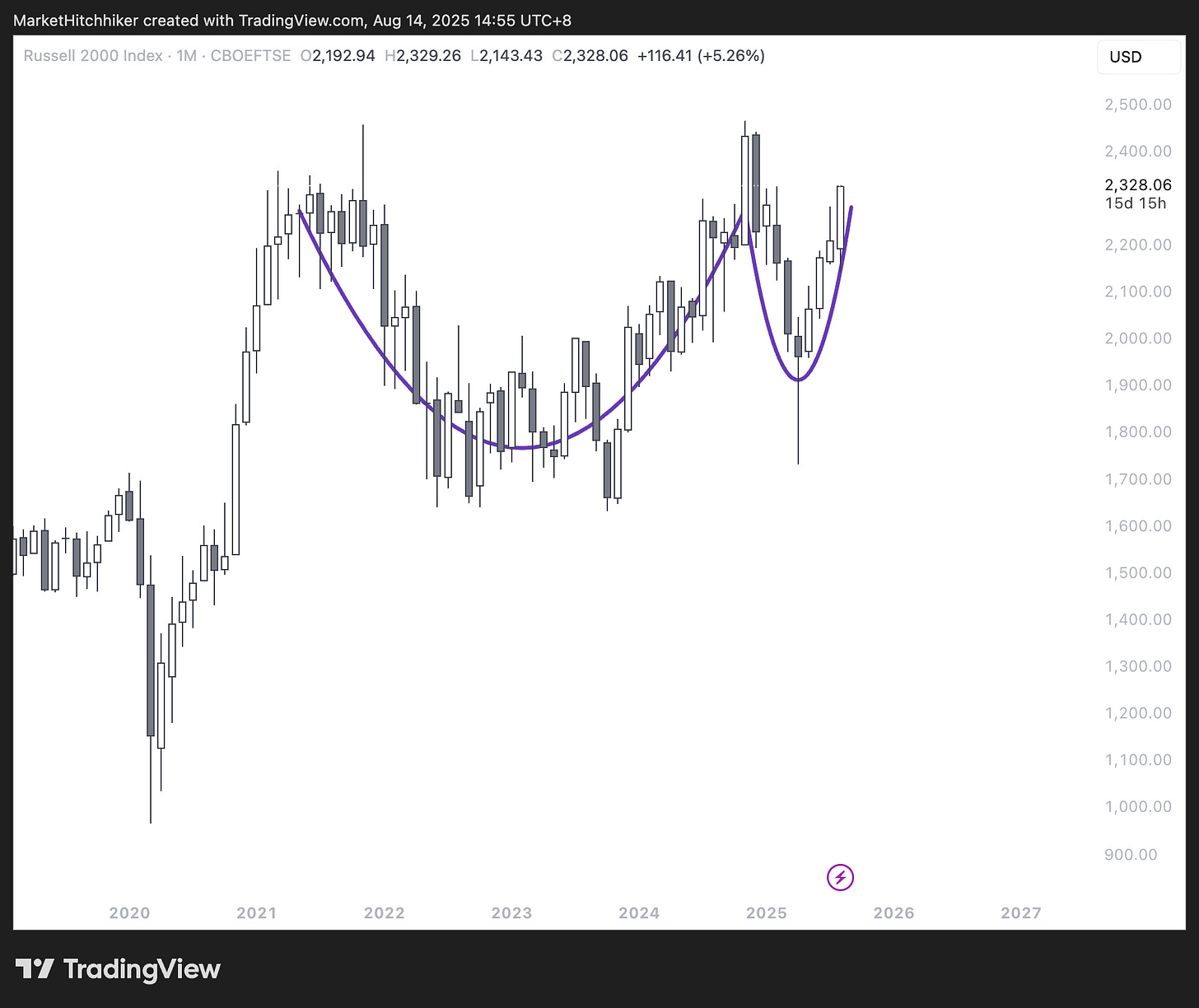 The monthly candlestick chart is forming what people-who-believe-in-astrology, aka chartists, call a 'cup and handle.' A breakout from this pattern, following a prolonged correction since 2021, is typically explosive. This isn’t just another rotation episode like those seen a few times last year. I believe this is the beginning of a significant move.