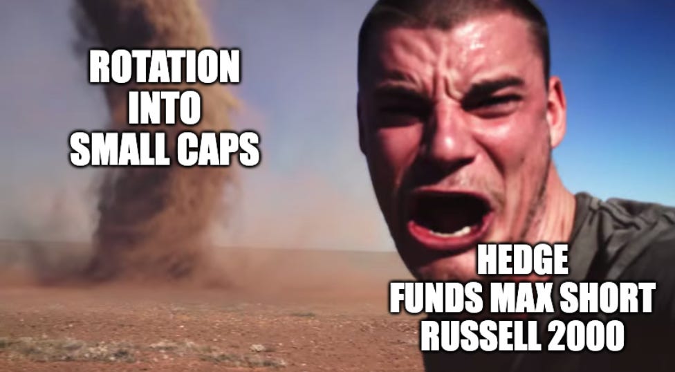 Small caps are heavily shorted, and a trigger event is unfolding: the Fed is cutting rates while the economy is growing.