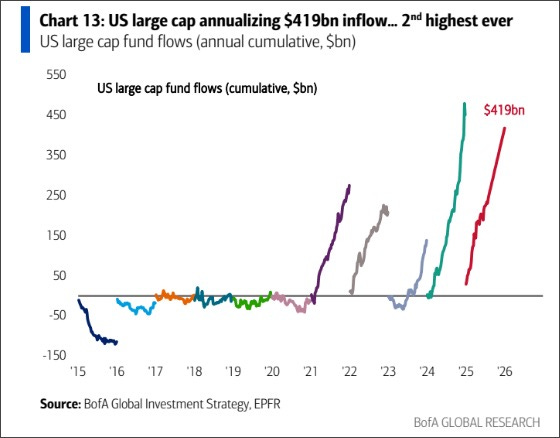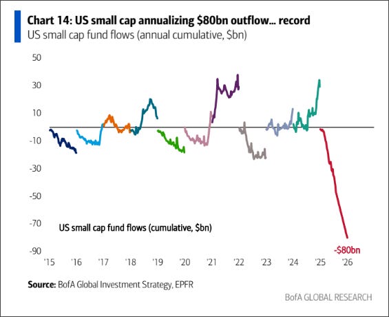Consensus among market participants is that large caps will continue to outperform small caps. This extrapolates past trends, and the flow mismatch has been INSANE this year.