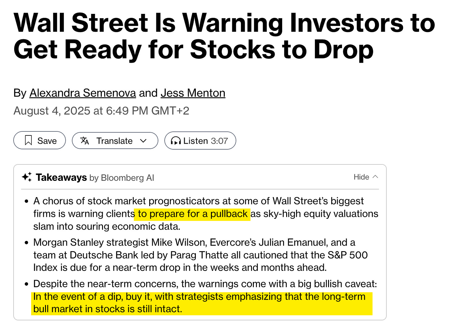 OMG Growth is slowing in H2-2025, per economists, and the stock market, at 22x forward P/E, isn’t pricing this. The market is a short here.