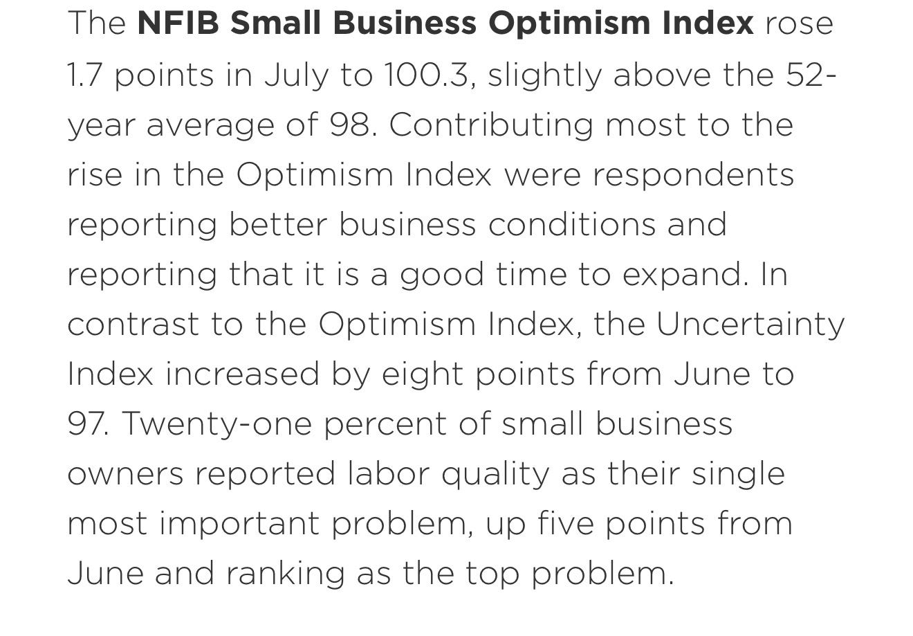 → The bar is set very low for the economy to surprise to the upside in Q3 2025. Experts are forecasting slow growth below 1%, while the nowcast is at +2.5% and Kalshi at +1.8%. Meanwhile, the stock market is pricing in a weak Q3 2025 and above average growth in 2026. Given the high upside risk to growth relative to consensus, I’m upgrading the Growth item to a green up arrow.
