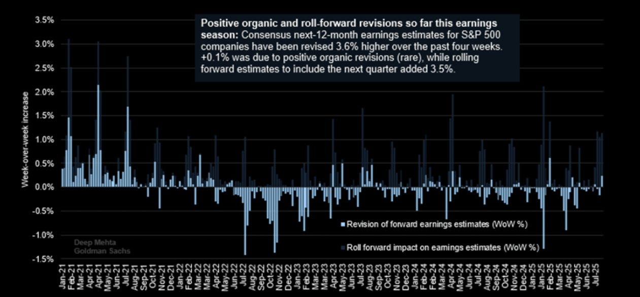 Q2 2025 has driven most of this melt-up, but we're also seeing positive revisions for all subsequent quarters. This is incredibly bullish and flies in the face of lower GDP forecasts for H2 2025 and 2026.