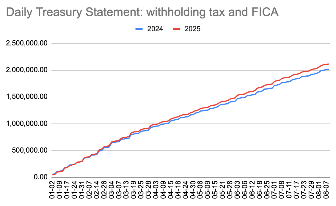 Daily Treasury Statement: The government is still collecting tax at a solid pace compared to last year.